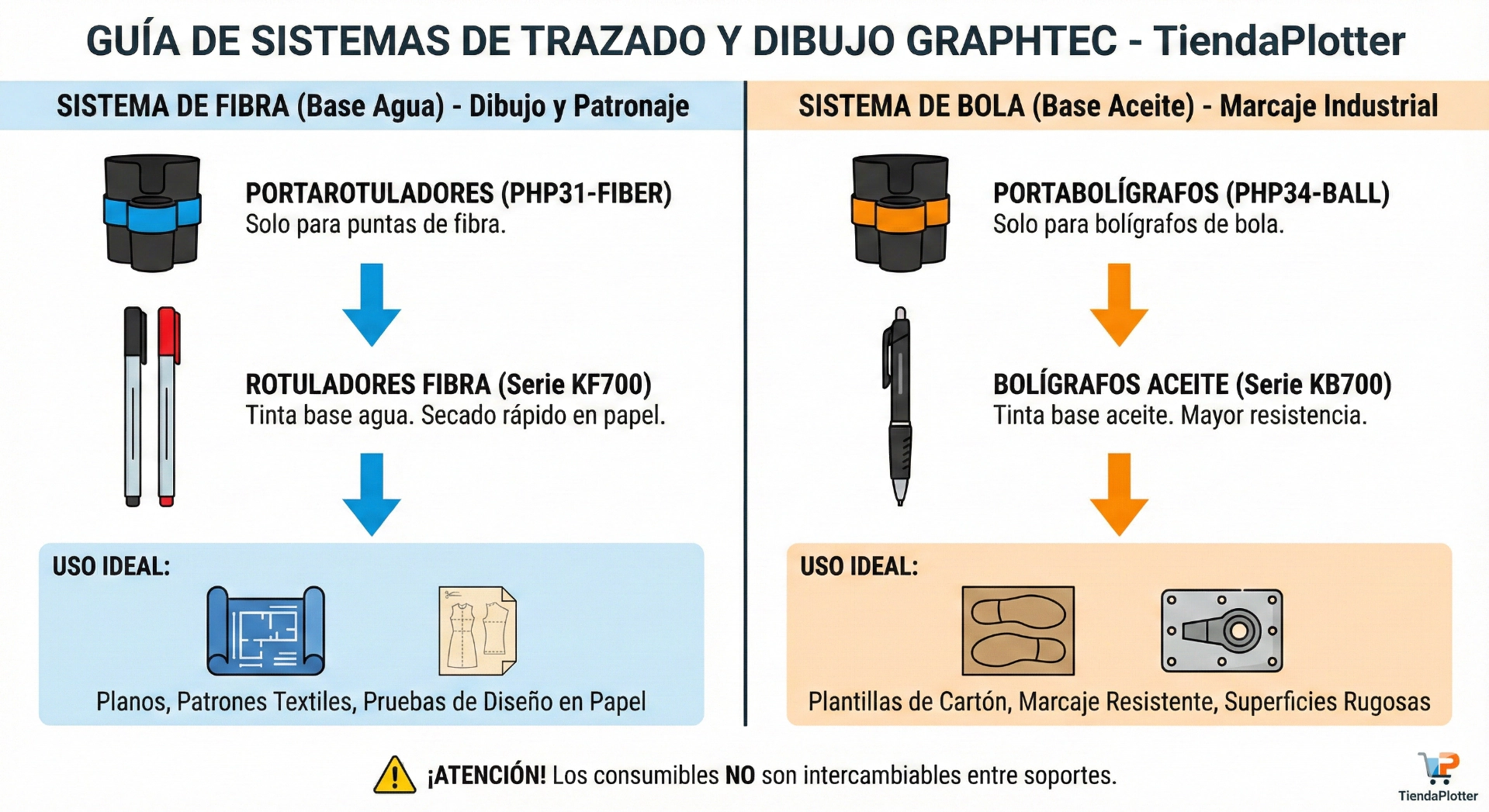 Compatibilidad de Consumible: Diseñado exclusivamente para los bolígrafos de base aceite de Graphtec (Serie KB700). No intentes usar los de fibra aquí, no encajarán bien.